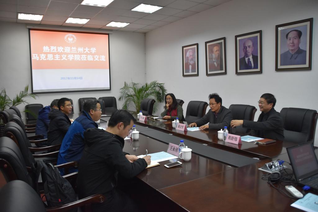 11月14日上午,兰州大学马克思主义学院党委书记赵泽斌一行四人来学部调研交流。学部主要负责人和中国近现代史基本问题研究系负责人参加座谈。